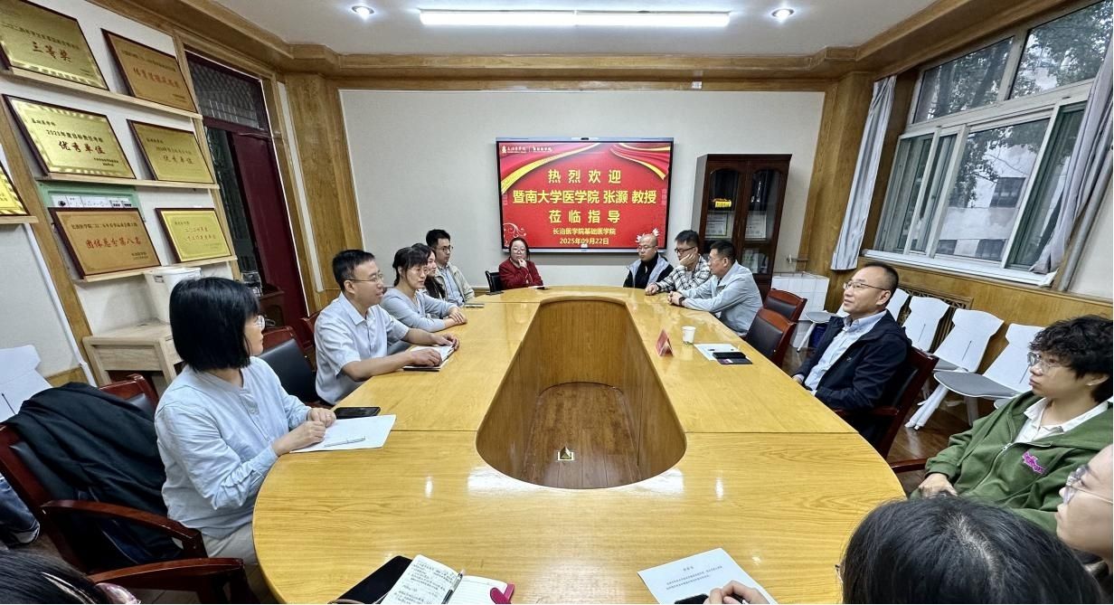 在随后基础医学院会议室召开的座谈会上,张灏教授与基础医学院博士教师进行了深入交流,他建议大家结合区域特性,充分利用道地药材和环境因素等独特资源,在肿瘤、代谢性疾病和神经退行性疾病等领域寻找细分研究方向,开展特色创新工作。