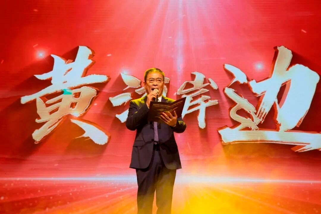 第二篇章“黄河岸边”由党委(院长)办公室主任邢育宏讲述。该篇章以母亲河为意象,通过多种艺术形式的巧妙融合,再现了黄河儿女同仇敌忾、保卫家园的壮丽画卷。演出既展现了黄河咆哮怒吼的磅礴气势,也表现了军民鱼水情深的感人场景,彰显了中华民族不屈不挠的斗争精神。