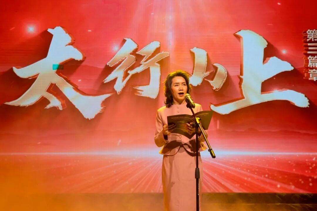 第三篇章“太行山上”由党委宣传部部长崔红讲述。这一篇章通过丰富多彩的艺术表现,生动再现了太行山区军民团结一心、共同抗日的感人故事。演出既表现了战士们的英勇无畏,也展现了人民群众的无私奉献,颂扬了太行儿女的英雄气概和革命精神。