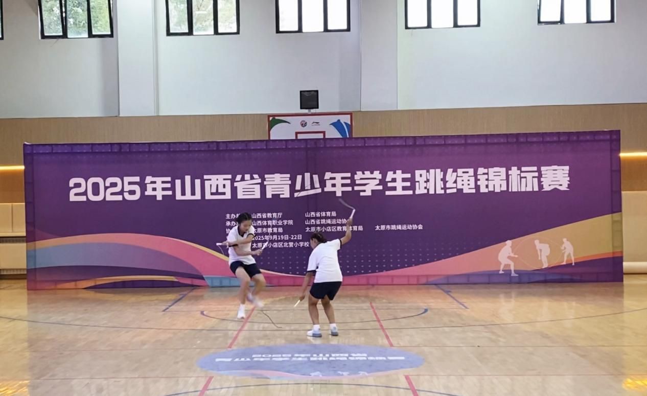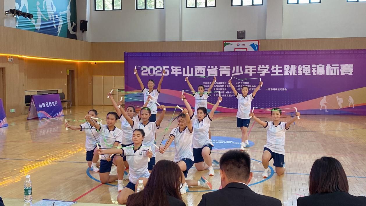 9月20日至21日,由山西省教育厅、山西省体育局主办的2025年山西省青少年学生跳绳锦标赛在太原市北营小学举行。该赛事吸引全省多支优秀代表队近千名青少年运动员参赛。学校高度重视本次赛事,选派公共体育部副主任赵岩担任领队、张琦老师担任教练,组建专业指导团队,带领12名优秀队员组成代表队参赛。