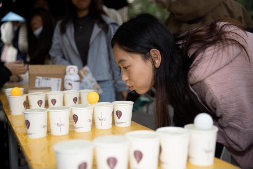 现场21项特色活动皆藏文化巧思:“吴刚伐桂”还原神话场景,师生手持木槌体验传统故事中的坚韧;“月兔拔牙”以萌趣形式呼应中秋拜月、兔儿爷的民俗;“我在月下留个言”专区,学子写下对家国的祝福;“击鼓传饼”复刻传统击鼓传花的热闹,传递的不仅是月饼,更是团圆情谊;“九天揽月”“月跃欲试” 等环节,以“月”为引,让传统意象与运动活力碰撞……