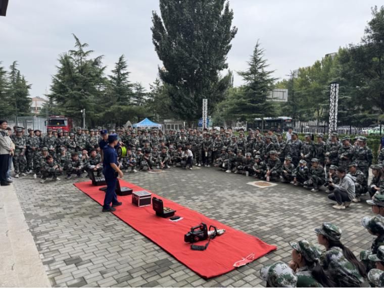 当天晚间,校园内的安全教育氛围持续升温。长治市消防救援支队支队长张胜利以“开学第一课”为主题,为同学们带来了一场生动的消防安全知识讲座。讲座中,他不仅现场展示了灭火器、消火栓、消防面罩等常用消防器材,还结合实物细致讲解了各类器材的工作原理、使用方法及日常维护要点。在互动环节,他为积极参与问答的同学们送上精心准备的互动礼品,既调动了大家的学习热情,也让消防安全理念更加深入人心。