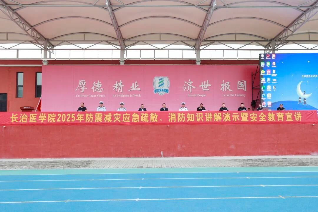 为进一步增强2025级新生的防震减灾安全意识,提升应对突发灾害的应急疏散能力与自救互救技能,我校精心组织开展了防震减灾应急疏散演练暨安全知识宣讲活动,特别邀请长治市消防救援支队全程参与指导,并调配消防车等专业装备协同配合,为演练增添了实战性与专业性。学校党委书记王金胜、党(校)办主任邢育宏等,长治市消防救援支队支队长张胜利等,长治市公安局上党分局禁毒、反恐、反诈等工作人员,2025级新生和辅导员共同参与了此次演练。