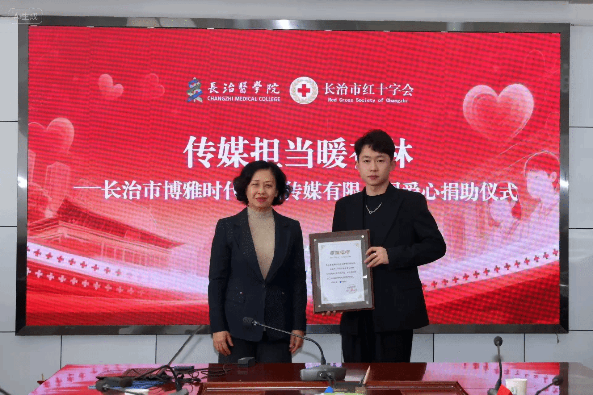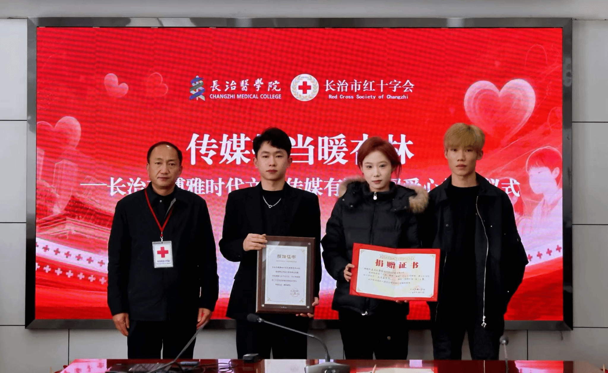 10月28日上午,“传媒担当暖杏林”爱心捐助仪式在我校举行,长治市博雅时代文化传媒有限公司通过长治市红十字会向我校捐资助学,用于奖励品学兼优的贫困大学生。博雅时代总经理暴易航,长治市红十字会党组成员、四级调研员高彦民,校党委常委、副校长来丽娜出席仪式,学工部及各院系师生代表参加,仪式由学工部副部长李永平主持。