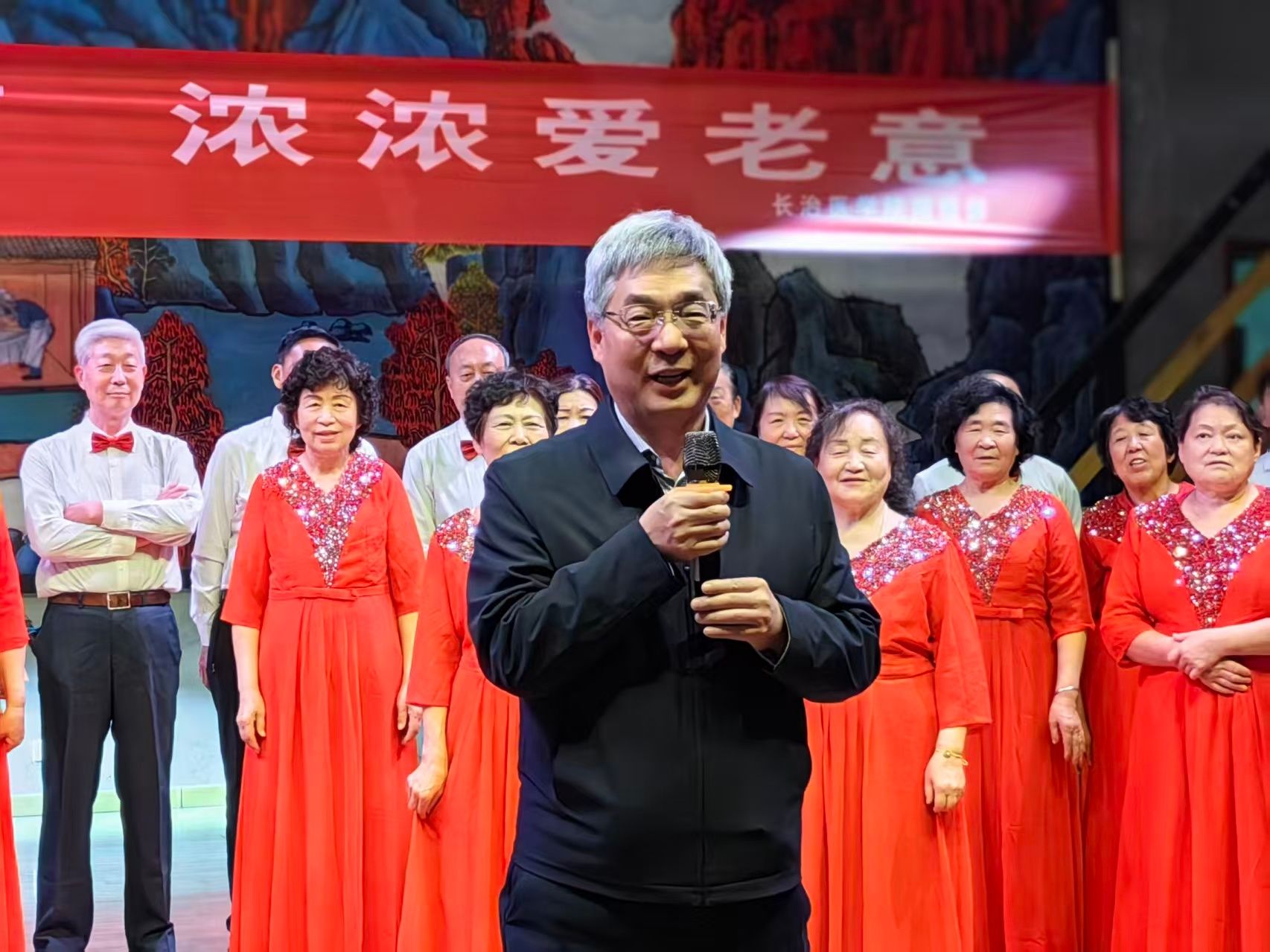 郑金平对本次联欢活动给予了高度评价,对老同志们和师生的表演赞不绝口。他指出,本次活动不仅给老同志们提供了展现才艺的机会,展示了老同志“老有所乐”、积极向上的良好精神风貌,也充分彰显出老年大学的教学成果突出、支部共建联建的成效显著、离退休人员管理部的工作可圈可点。最后,他代表学校党委向全体离退休老同志们致以节日的祝福,并希望老同志们在保证身体健康基础上继续心系学校发展,积极贡献“银发力量”,共同谱写长医发展新篇章。