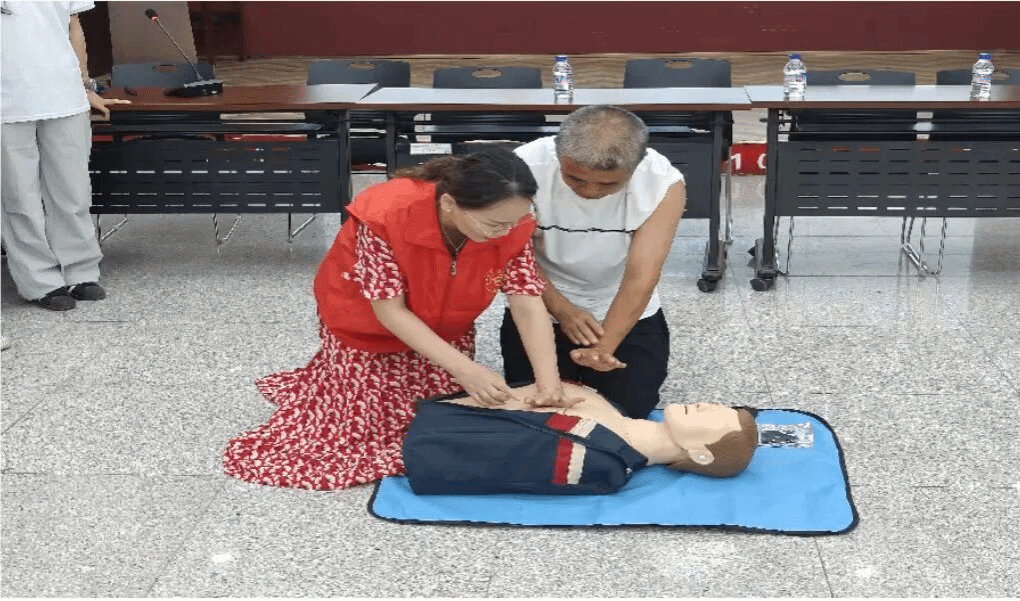 活动中,关佳星老师详细讲解心肺复苏与海姆立克急救法原理,陈晓丽老师现场演示标准操作流程。居民积极参与实操练习,老师耐心指导,帮助居民掌握心肺复苏的核心技巧与海姆立克急救法的不同年龄段差异化施救技巧,以切实提升居民应急救护能力。