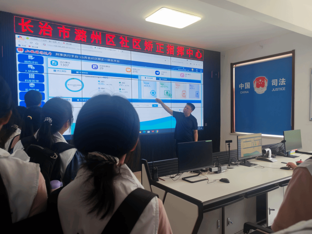 7月2日,实践队前往潞州区司法局参观学习,了解未成年人社区矫正工作的流程和各科室职能。在指挥中心,大数据支持的个性化矫正方案令队员们印象深刻,方案涵盖法律学习、心理干预等内容,精准对接帮教需求。座谈会上,冯超主任详细介绍了未成年人社区矫正工作的意义与举措,强调价值观重塑对涉罪未成年人的重要性,与实践队“法治护航成长”的目标高度契合。