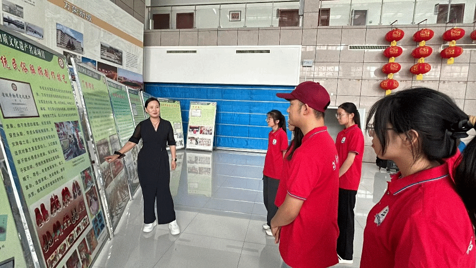 活动期间,团队首先走进万荣县文化馆开展参观学习。成员们驻足非遗展厅,通过实物陈列、图文介绍等系统了解当地非物质文化遗产概况。随后,团队与万荣县文化馆馆长畅晓红围绕国家级非遗项目“万荣花鼓”的历史渊源、艺术特色、保护现状及传承挑战展开深入交流。在沉浸式体验中,成员们深刻感受到非遗文化的独特魅力,进一步理解了“万荣花鼓”所蕴含的历史文化价值,也增强了对非遗保护传承紧迫性的认识。