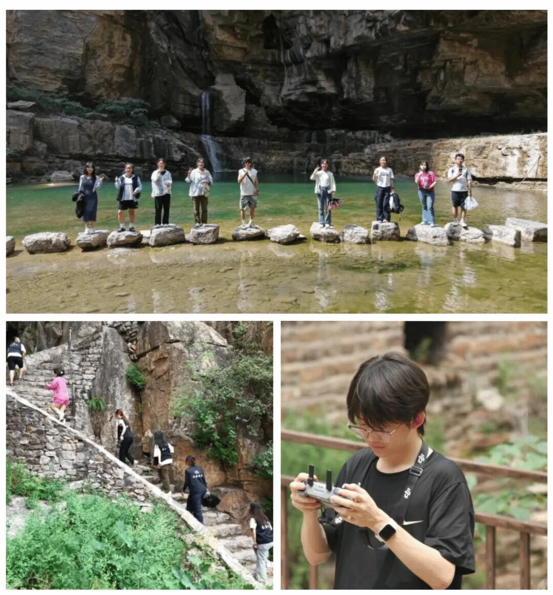 实践过程中,团队注重从历史与现实维度挖掘精神内核与文化价值。虹霓村老村长王国宝担任向导,向队员们讲述太行山挂壁公路 “一锤一钎凿山岩” 的修建往事,发出了“那时候真苦,但为了通路,再难也得干!”的感慨,生动诠释了太行精神中攻坚克难、敢为人先的深刻内涵,彰显出“逢山开路”的奋斗力量。在虹梯关古道,队员们对照《平顺县志》梳理“五十二道之字拐”等遗迹,青石板上的车辙凹痕清晰见证了昔日盐铁贸易的繁荣与军事防御的烽烟,让历史文化底蕴可感可知。走进通天峡,团队用镜头定格猕猴、翠湖、飞瀑构成的生态画卷,充分展现太行山水的灵秀风光与丰富的生物多样性。