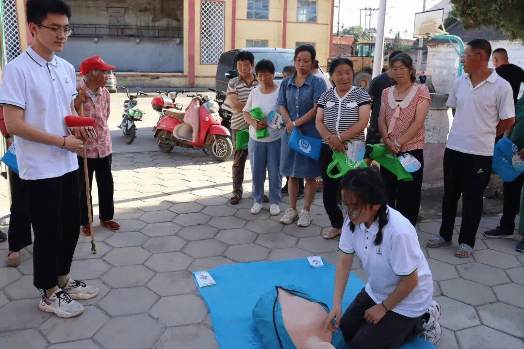 禁毒宣传入基层,急救培训助健康。实践团联合长治市公安局禁毒支队和长治市公安局交警支队二大队,在长治市潞州区老顶山镇西长井村开展了禁毒知识宣传和急救技能培训活动。通过发放禁毒宣传手册,实物展示和文字讲解等方式,向居民普及禁毒法律法规,识别常见毒品、认识毒品危害、警惕毒品陷阱,从而增强居民禁毒观念,自觉做到抵制毒品,积极宣传禁毒知识,践行健康生活理念。实践团还向村民们系统讲解了心肺复苏和急救法,并进行现场演示和实践操作指导,帮助村民快速掌握基本方法,提高他们对突发状况的自救、互救能力。