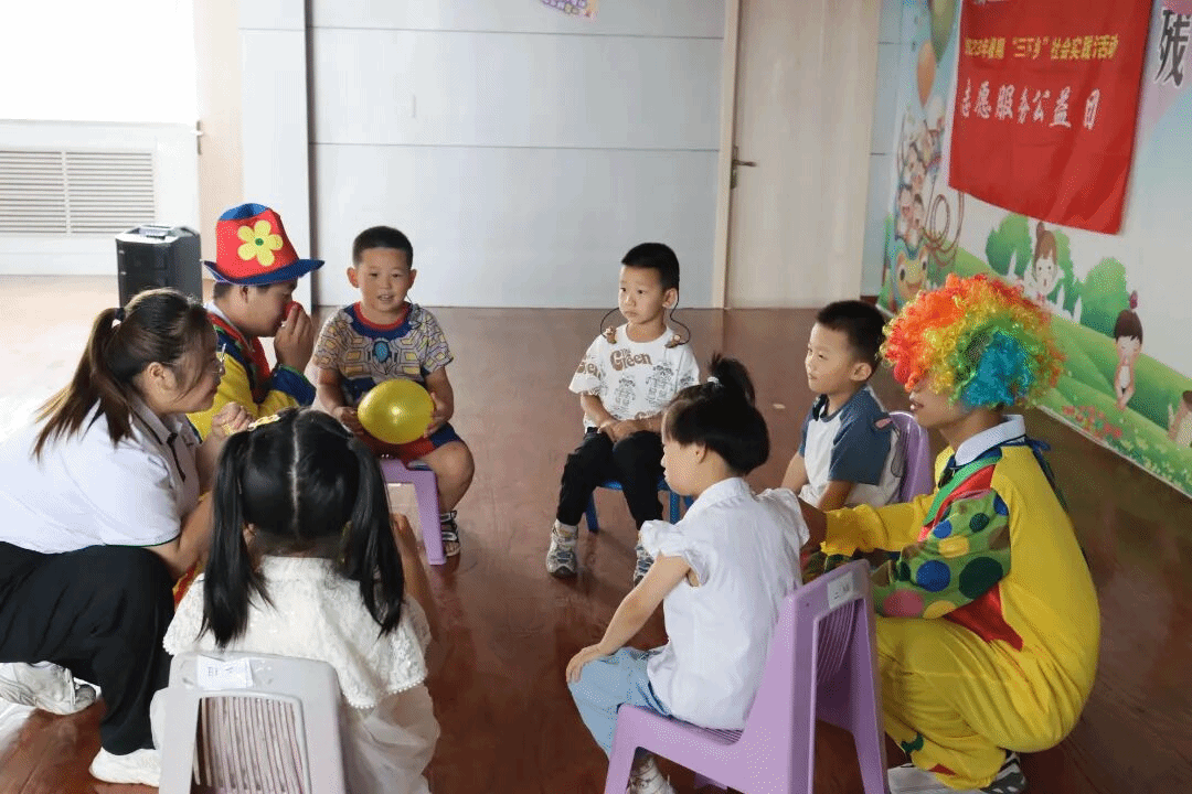 守护折翼天使,传播温暖希望。实践团队员们装扮成“小丑医生”来到长治市残疾人联合中心,为小朋友们带来了可爱的玩偶、美味的面包以及香甜的牛奶,和小朋友们一同参加精心设计的游戏活动,帮助小朋友们纾解心灵。“小丑医生”特色关爱志愿实践活动,也受到了家长的高度好评,其中一位家长说:“看到志愿者与孩子们一起嬉戏,以实际行动理解、尊重、关心、帮助孩子们,给予他们心灵上的慰藉,鼓励他们战胜困难,作为家长真的非常感动。”